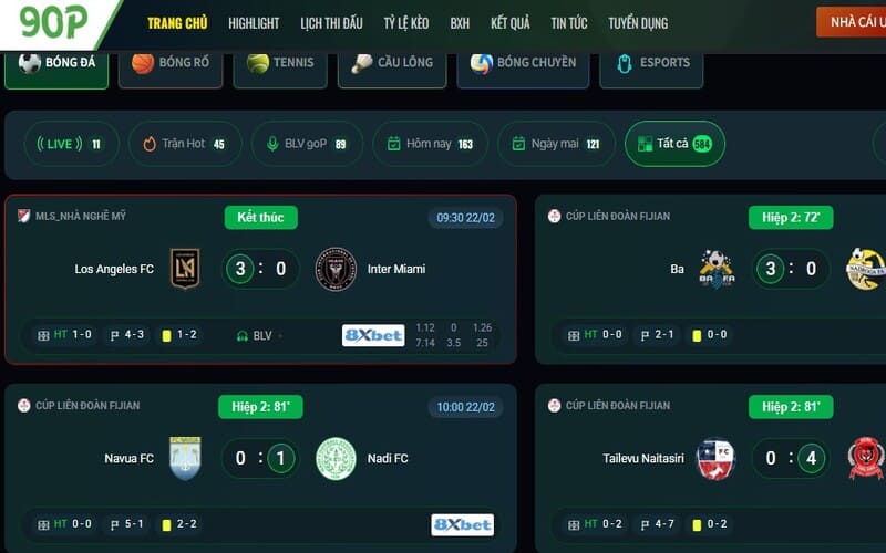 - Lịch thi đấu cực kỳ chi tiết: Ngay trên trang chủ, bạn thấy ngay toàn bộ lịch trận đấu trong ngày, kèm giờ phát sóng theo giờ Việt Nam – không cần lướt đi tìm đâu xa.