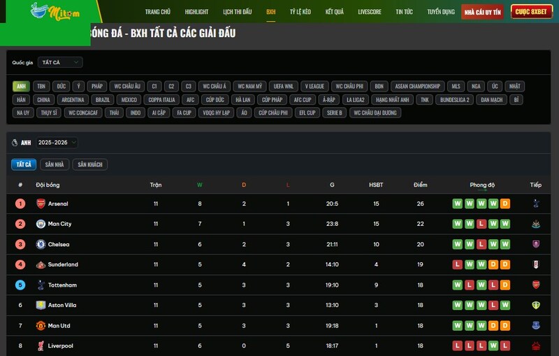 Để theo dõi trọn vẹn Ngoại Hạng Anh, bạn cần một bảng xếp hạng bóng đá anh đầy đủ dữ liệu, phản ánh nhịp đập thực sự của mùa giải và cập nhật liên tục.