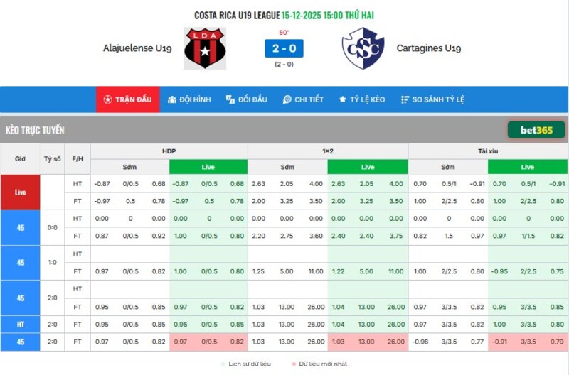 Kèo cập nhật liên tục, dễ theo dõi biến động